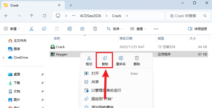 8.鼠标右击解压出来的【Keygen】选择【复制】