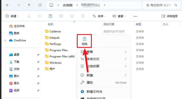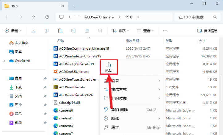 16.打开软件的安装位置【如:D】(若您在步骤4修改到了其它盘,请打开修改后的磁盘对应位置)鼠标右击空白处选择【粘贴】