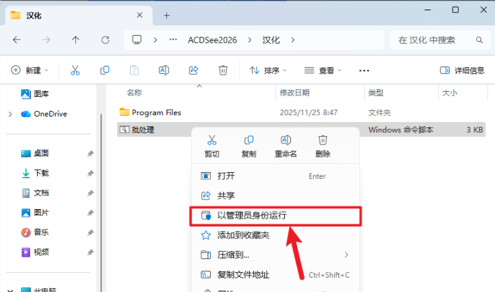 15.鼠标右击【批处理…】选择【以管理员身份运行】(程序运行后会自动关闭)
