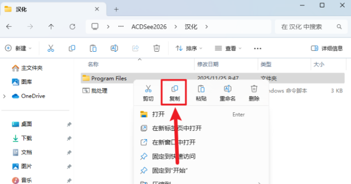 在打开的【Crack】文件夹中,鼠标右击【Program Files】选择【复制】