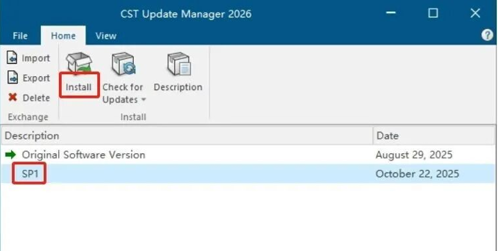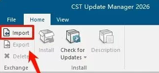 12.点击【Import】,找到解压的【CST Studio Suite 2026 】-【update】,选择update文件,点击右下角【打开】