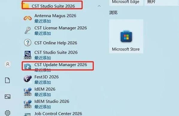 11.点击【开始菜单】,找到【CST Update Manager 2026】,打开