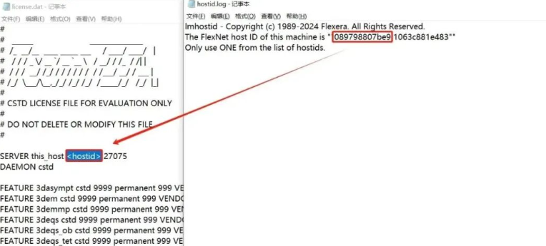 22.把【hostid.log】中的hostid复制到【license.dat】中的【hostid】