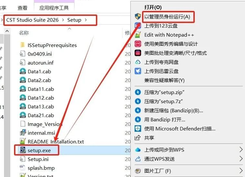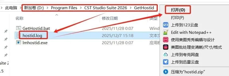 19.进入【D盘】-【Program Files】-【CST Studio Suite 2026】-【GetHostid】文件夹(即第6步选择的路径),选择【GetHostid.bat】,右键,选择【以管理员身份运行】