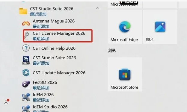 24.点击【开始菜单】,找到【CST License Manager 2026】,点击
