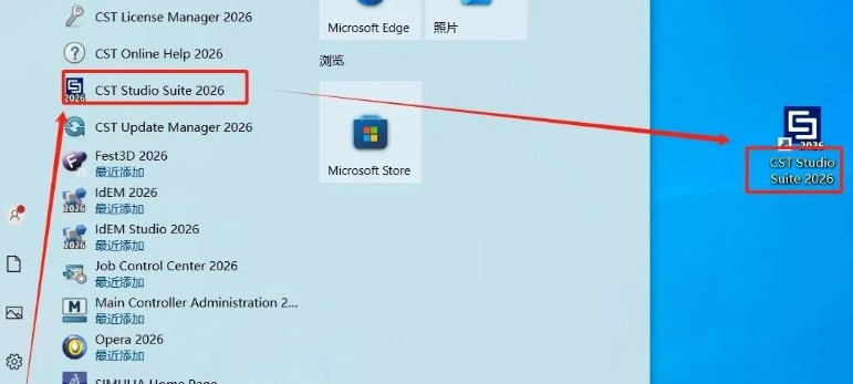 28.点击【开始菜单】,找到【CST Studio Suite 2026】图标,拖到桌面