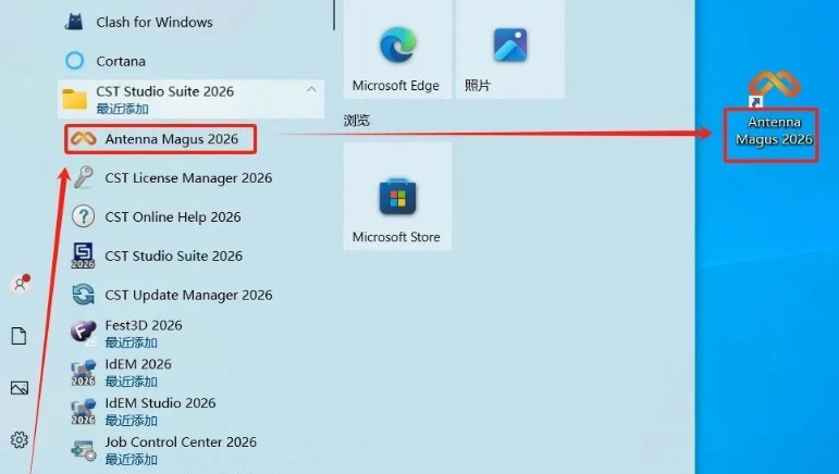 32.点击【开始菜单】,找到【Antenna Magus 2026】图标,拖到桌面。