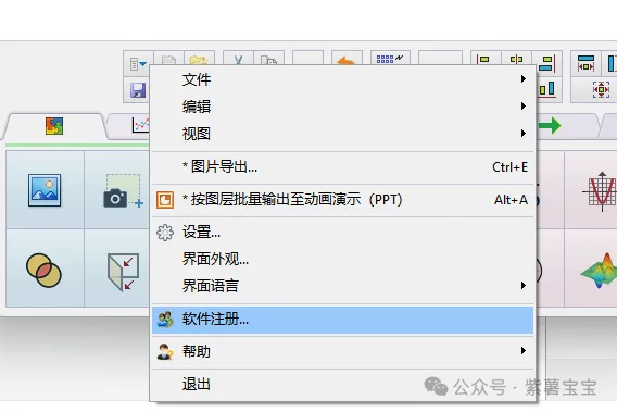 10.点击菜单图标,点击“软件注册“