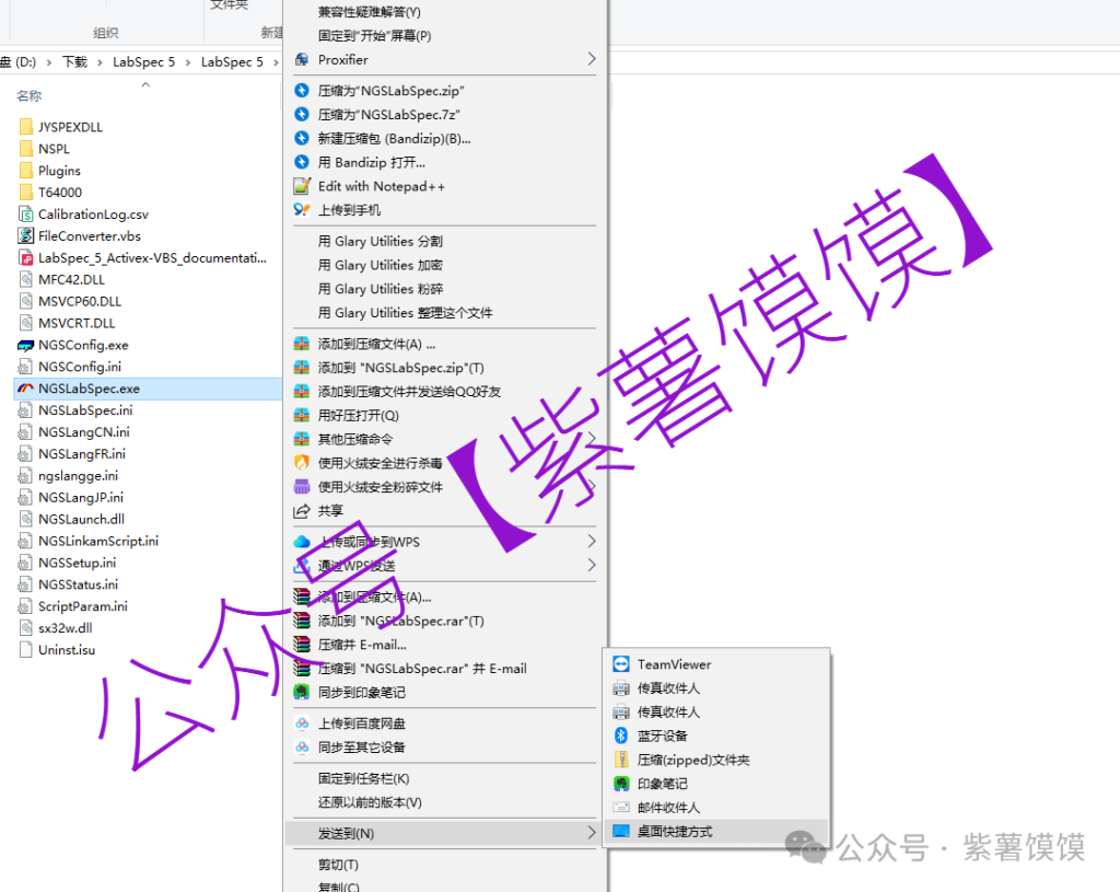 2.双击打开【Labspec】文件夹,鼠标右击【NGSLabSpec】,【发送到】,点击【桌面快捷方式】