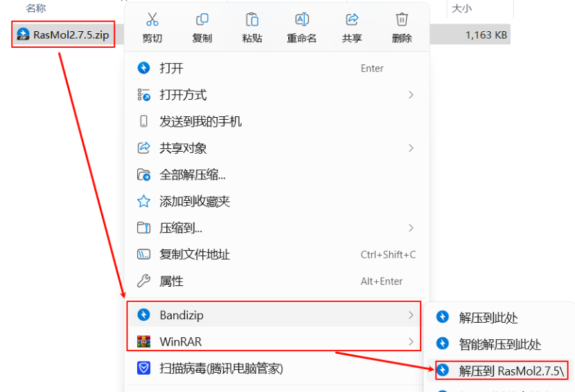 1.选中下载好的安装包,右键解压到“RasMol2.7.5”文件夹