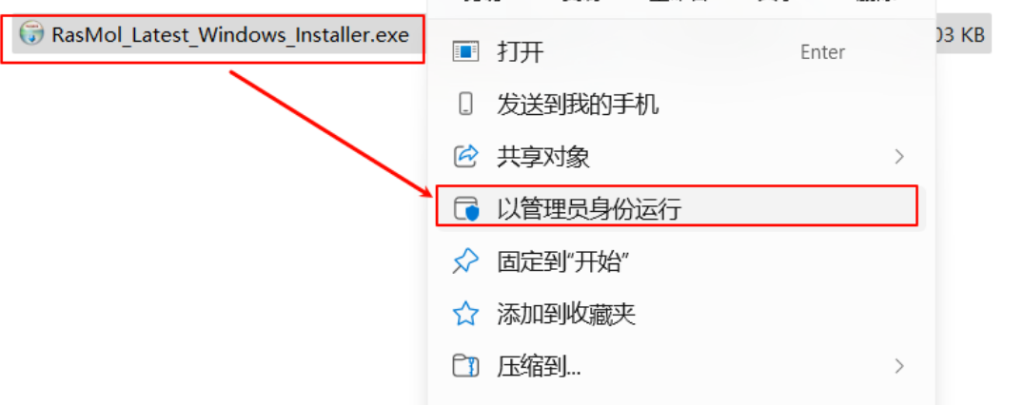 2.选中“RasMol_Latest_Windows _Installer.exe”右键以管理员身份运行