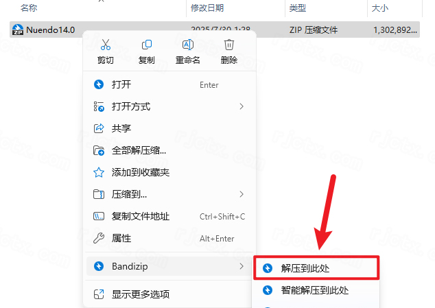 1.下载完成后,鼠标右击【Nuendo 14】压缩包,选择【解压至此处】
