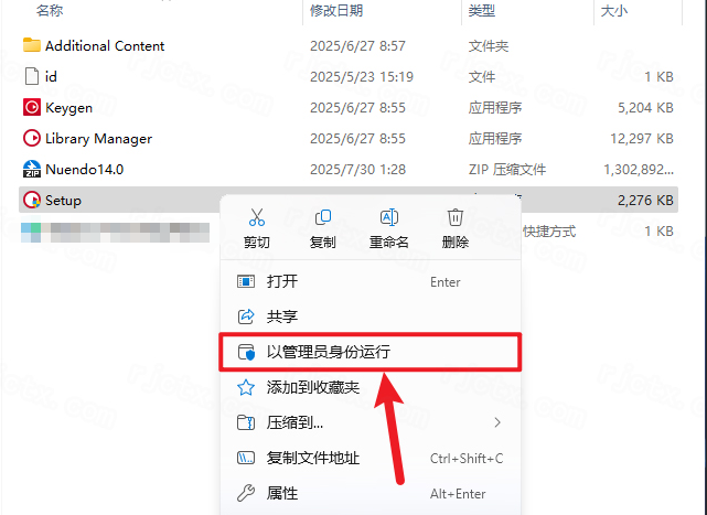 8.打开安装包解压后的【Nuendo14.0(64bit)】文件夹,鼠标右击【 Setup】选择【以管理员身份运行】