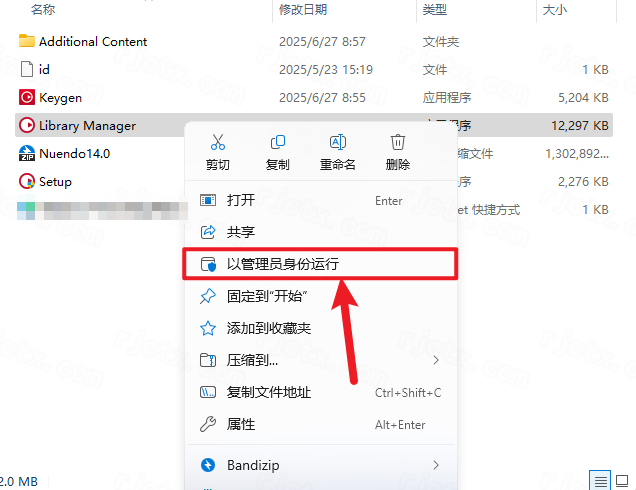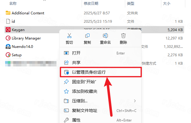 15.打开安装包解压后的【Nuendo14.0(64bit)】文件夹,鼠标右击解压出来的【Keygen】选择【以管理员身份运行】