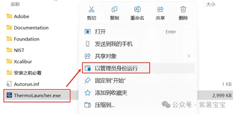 2.选中“ThermoLauncher.exe”右键以管理员身份运行