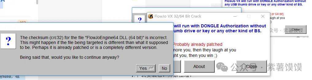 10.忽略提示,点击patch,选择安装第四步你的安装路径,再此点击patch