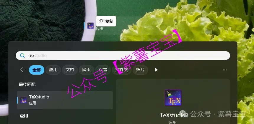 14.在【开始】菜单栏找到【Texstudio】鼠标左键拖拽到桌面上即可创建桌面快捷方式,或者右键打开文件安装路径,复制粘贴快捷方式到桌面