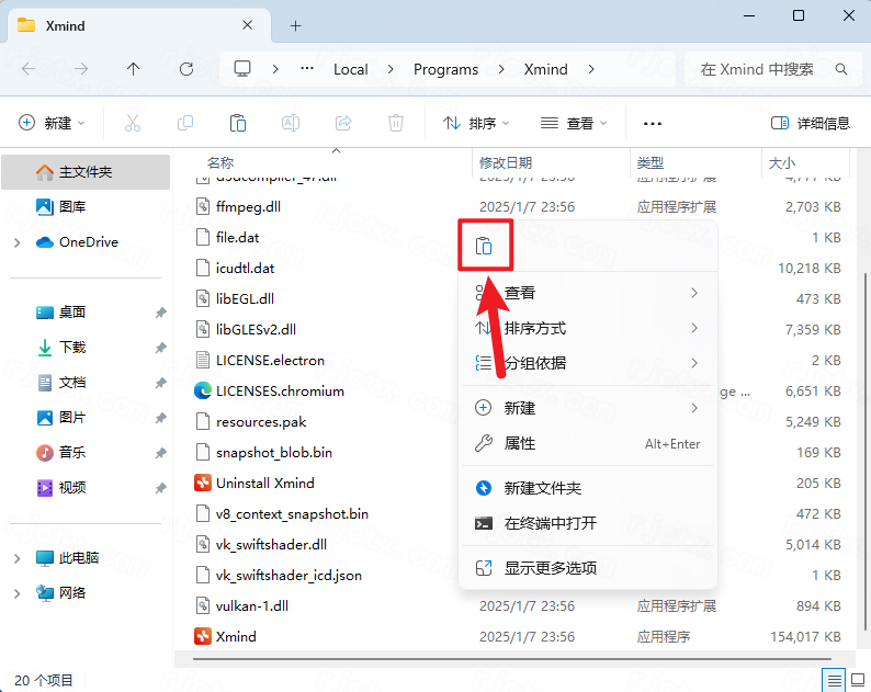 1.下载完成后,鼠标右击【Xmind 2025】压缩包,选择【解压至此处】