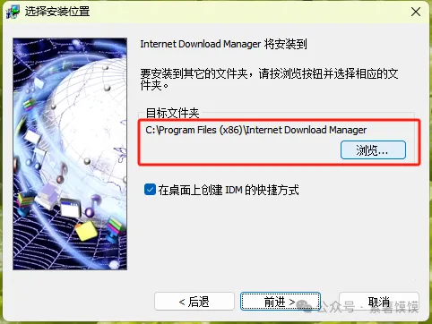 运行 IDM 6.42 (25) 安装包,安装目录,选择 C 盘,只有选择C盘,浏览器才会接管下载