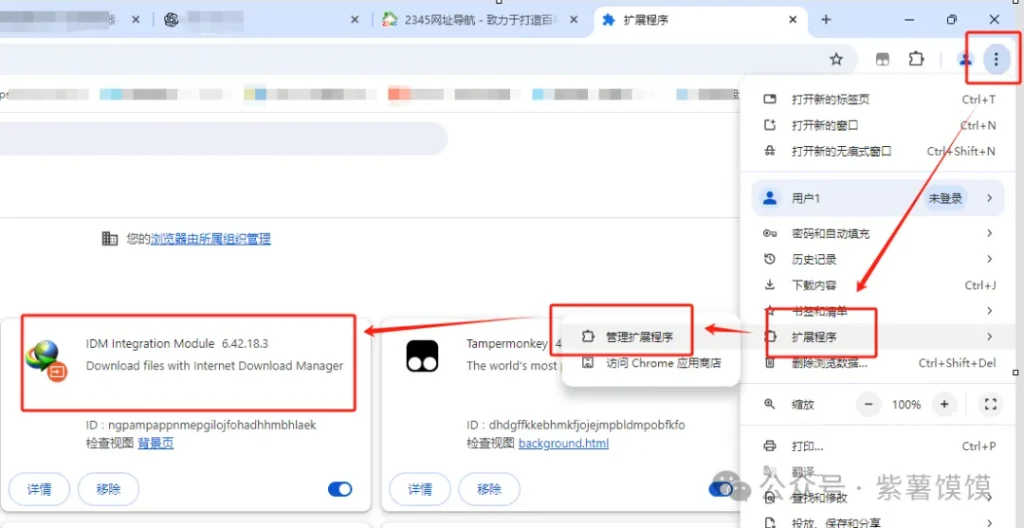 以谷歌浏览器Chrome为例,点击浏览器的扩展可以看到安装好的程序