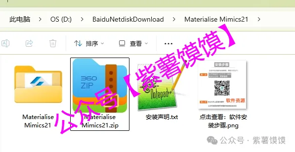 1.下载【Materialise Mimics21】到本地,选择非系统自带解压工具,【解压到 Materialise Mimics21】