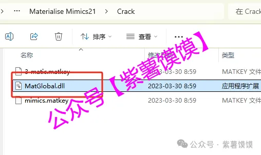 28.回到安装包解压后的【Crack】文件夹,鼠标右击【mimics.matkey】选择【打开方式】