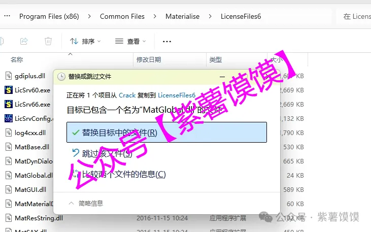 16.鼠标右击【MatGlobal.dll】选择【复制】