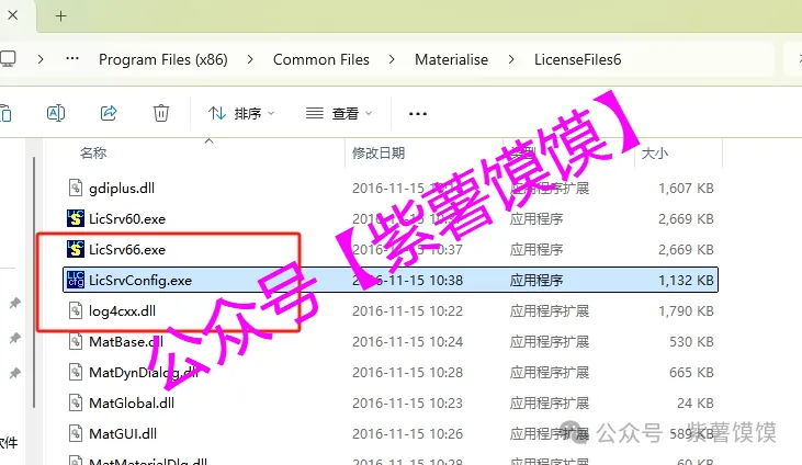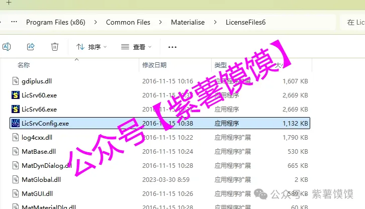17.打开C盘位置:C:\Program Files (x86)\Common Files\Materialise\LicenseFiles6,鼠标右击【LicSrvConfig】选择【以管理员身份运行】