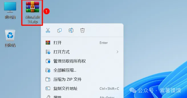 1.解压下载的安装包: 鼠标点击【UltraEdit 31.zip】 选择电脑上安装的解压软件(如:WinRAR等) 点击【解压到UltraEdit 31】。