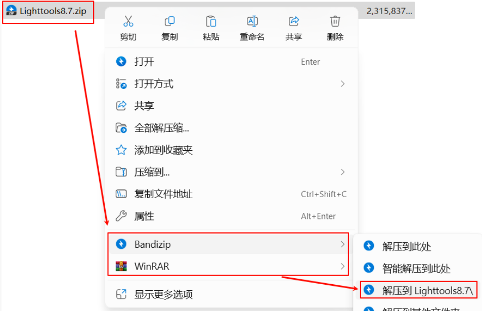 1.选中下载好的安装包,鼠标右键解压到“Lighttools8.7”文件夹