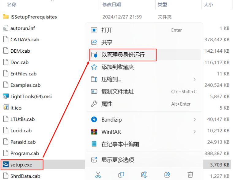 2.双击打开“setup”文件夹 3.选中“setup.exe”右键以管理员身份运行