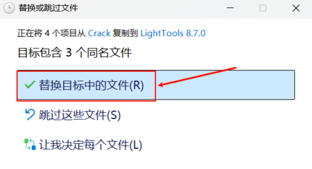 16.点击”替换目标中文件“