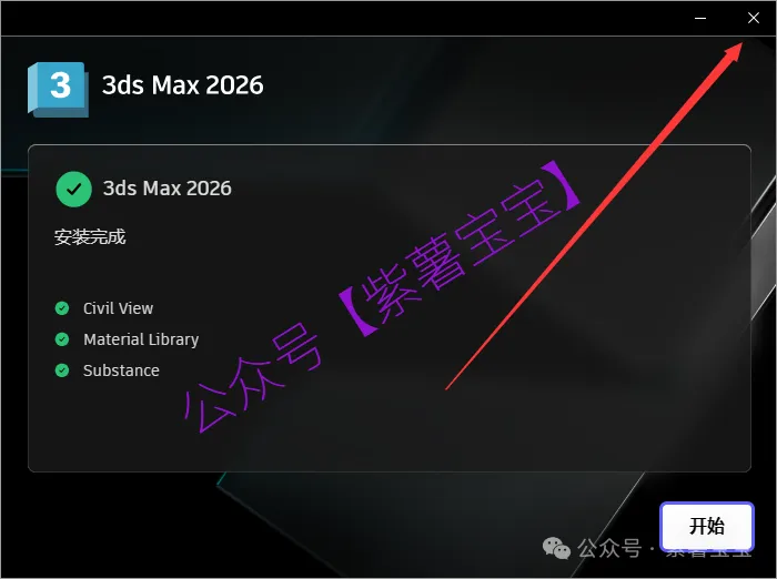 9.安装成功,点击X关闭,不要点击开始