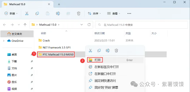 3、找到【PTC Mathcad 15.0 M050】文件夹,右键【打开】它