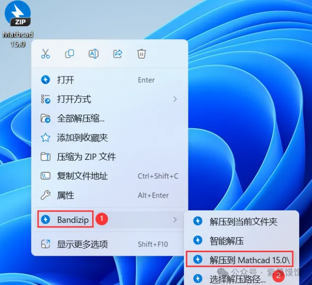 1、下载Mathcad 15.0软件安装包到电脑上,右键选择【解压到Mathcad 15.0\】