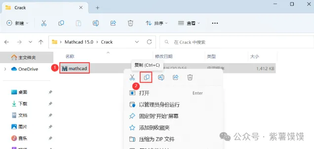 21、找到【mathcad】文件,右键点击【复制按钮】
