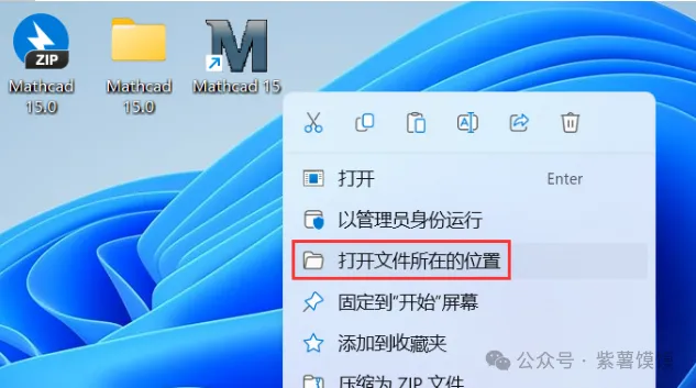 22、回到桌面,右键桌面上的【Mathcad 15.0软件图标】,点击【打开文件所在的位置】