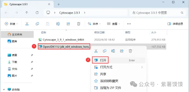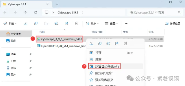 10、回到Cytoscape 3.9.1文件夹,找到【Cytoscape_3.9.1…】应用程序,右键选择【以管理员身份运行】它
