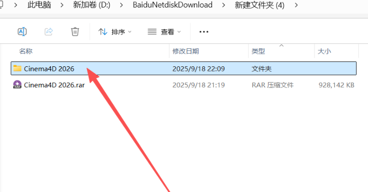 1.鼠标右击【Cinema4D 2026】压缩包,选择【解压到Cinema4D 2026】