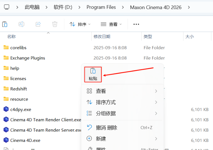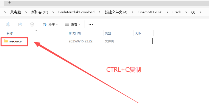 10.进入【Cinema4D 2026\Crack\00】文件夹内,复制【resource】