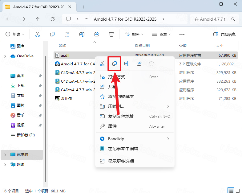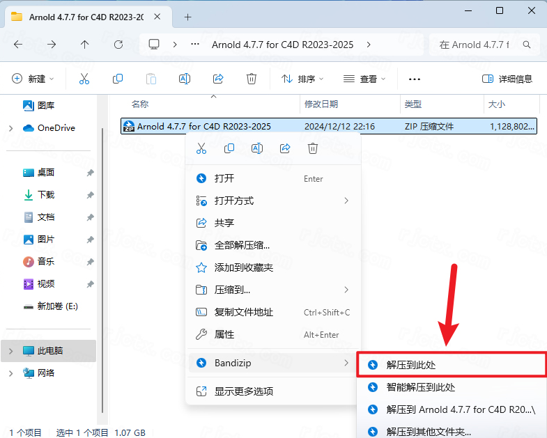 1.下载完成后,鼠标右击【Arnold 4.7.7 for C4D R2023-2025】压缩包,选择【解压至此处】