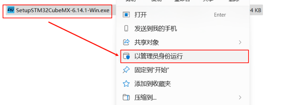 2.选中“SetupSTM32CubeMX-6.14.1-Win.exe”右键以管理员身份运行
