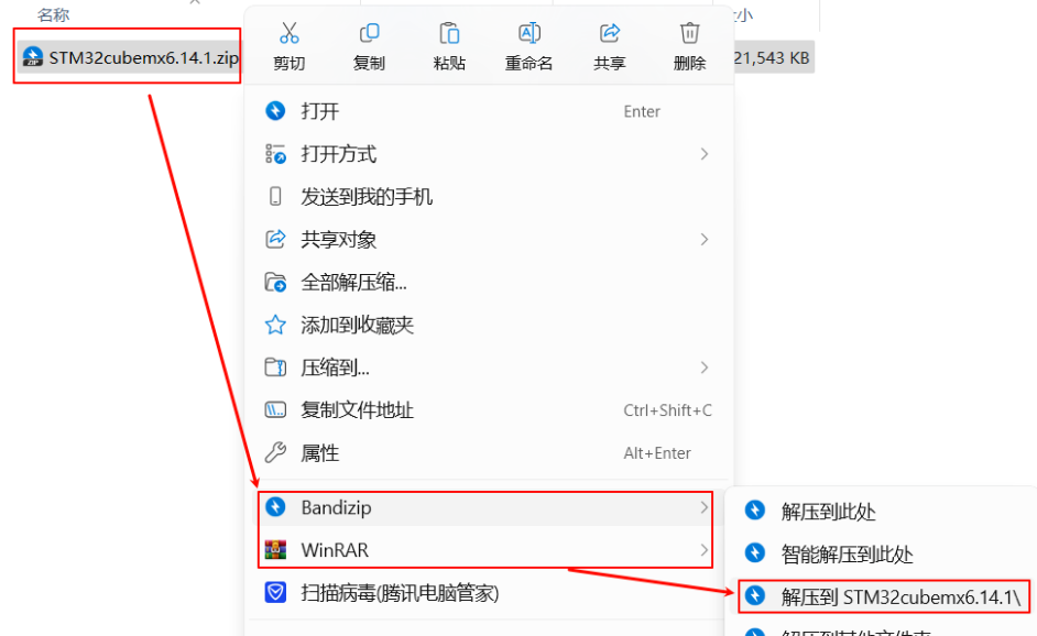 1.选中下载好的安装包,右键解压到“STM32cubemx6.14.1”文件夹