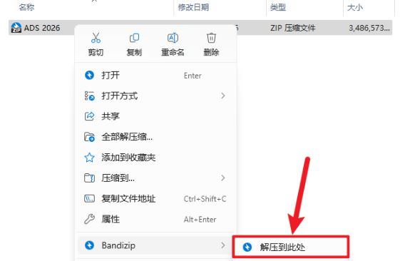 1.下载完成后,鼠标右击【Advanced Design System 2026】压缩包,选择【解压至此处】