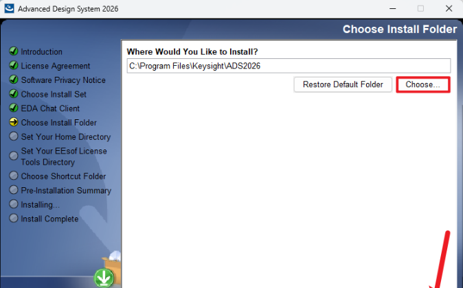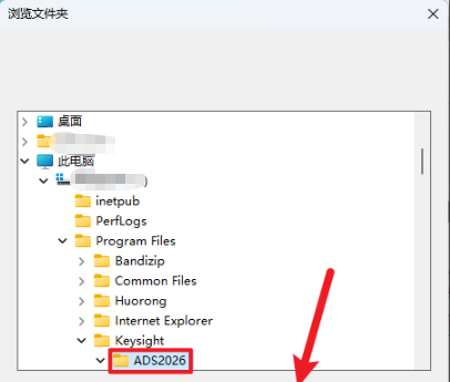 20.打开步骤9修改的软件安装位置【如:C:\Program Files\Keysight】并选中【ADS2026_Update2】文件夹,点击【确定】