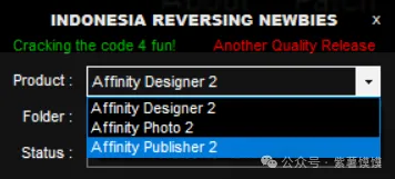 在product栏右侧,点击倒三角标识,在弹出的三个选项中,选择要破解的publisher2,