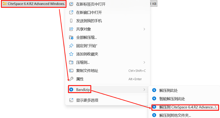 1.选中下载好的安装包,右键解压到“CiteSpace 6.4.R2 Advanced Windows”文件夹