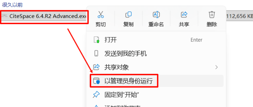 2.选中“CiteSpace 6.4.R2 Advanced.exe”右键以管理员身份运行