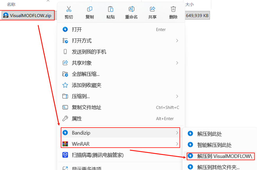 1.选中下载好的安装包,右键解压到“VisualMODFLOW”文件夹