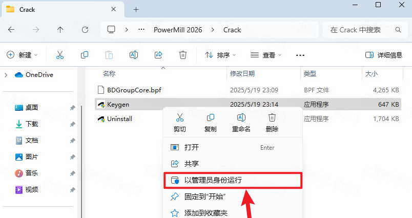 10.鼠标右击解压出来的【Keygen】选择【以管理员身份运行】